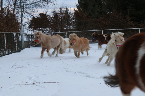 Zimní radovánky s minikoníky ve sněhu