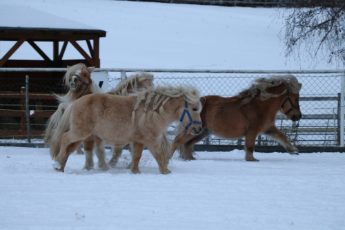 Zima letos ukázala svou krásnější tvář a dopřála nám pořádnou dávku sněhu. Této příležitosti jsme se rozhodně nechtěli vzdát, a tak jsme společně s mládeží z našich kroužků vyrazili ven užít si zimní den naplno. Čerstvý vzduch, zasněžený areál a nadšení všech zúčastněných vytvořily ideální podmínky pro zimní běhání a dovádění s minikoníky plemene falabella.