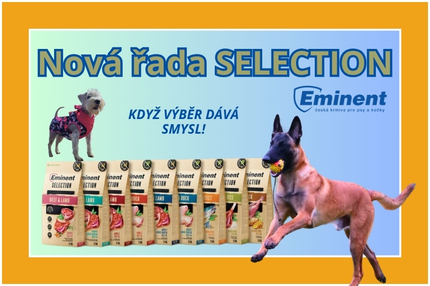 Značka Eminent patří mezi dlouhodobé partnery našeho vzdělávacího centra a jsme rádi, že vám můžeme představit jejich novou řadu superprémiových krmiv – Eminent Selection. Tato řada vznikla s důrazem na přirozenou výživu, vysoký podíl masa a složení bez obilovin nebo s lehce stravitelnými surovinami.
