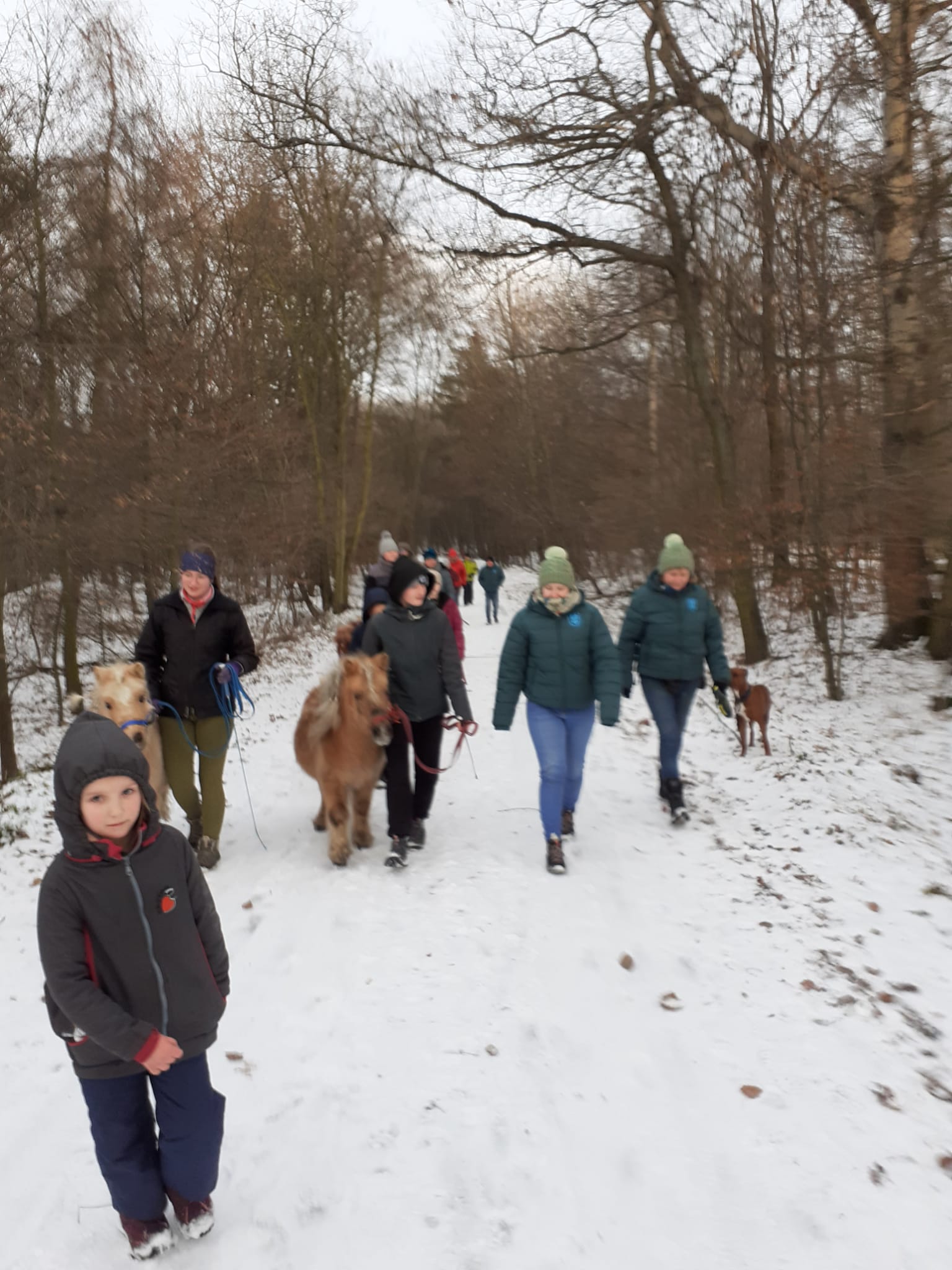 Novoroční procházka s minikoníky spojila mládež, rodiče, pejsky i vítr, přesto jsme si společné chvíle užili.